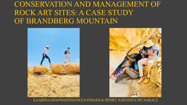 Kaarina Shagwanepandulo Efraim and Henry Napandulwe Nakale, "Conservation and management of rock art sites: a case study of the Brandberg Mountain", The COSMO-ART Conference on Rock Art, Kimberley, South Africa, 30 Nov. - 6 Dec. 2025.